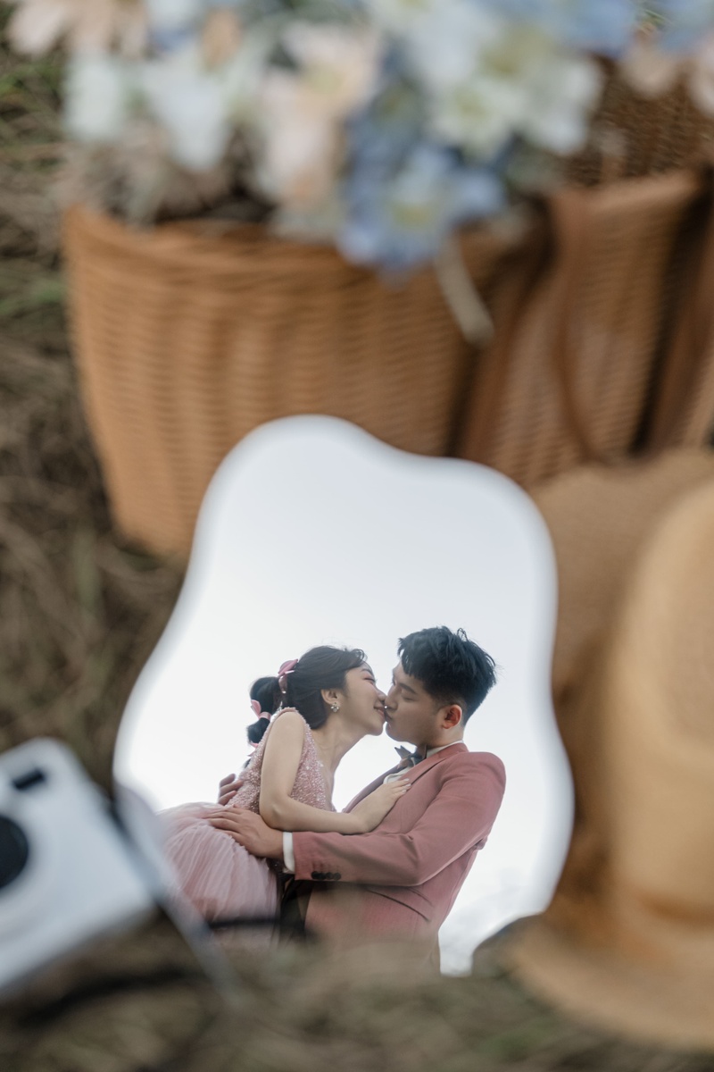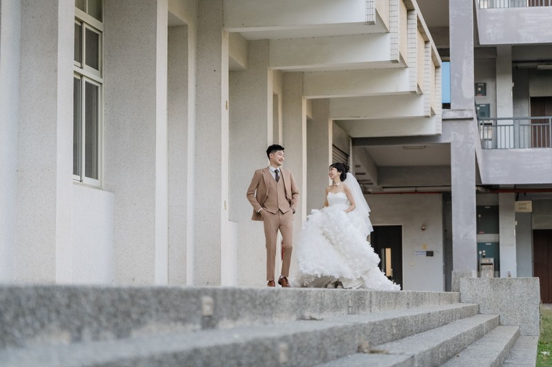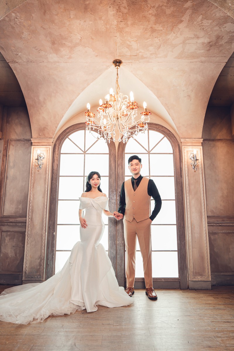 拍攝時攝影師真的專業指導令人驚豔,各種燈光角度都抓得很精準,也會很具體地請新人擺姿勢跟眼神,拍攝過程是幽默及輕鬆的氛圍,讓我們的笑容呈現的都非常自然,令人驚訝的一點,攝影師還自備許多意想不到的道具好有趣好好玩,而且事後我們喜歡的角度與動作,幾乎都有安排拍攝。