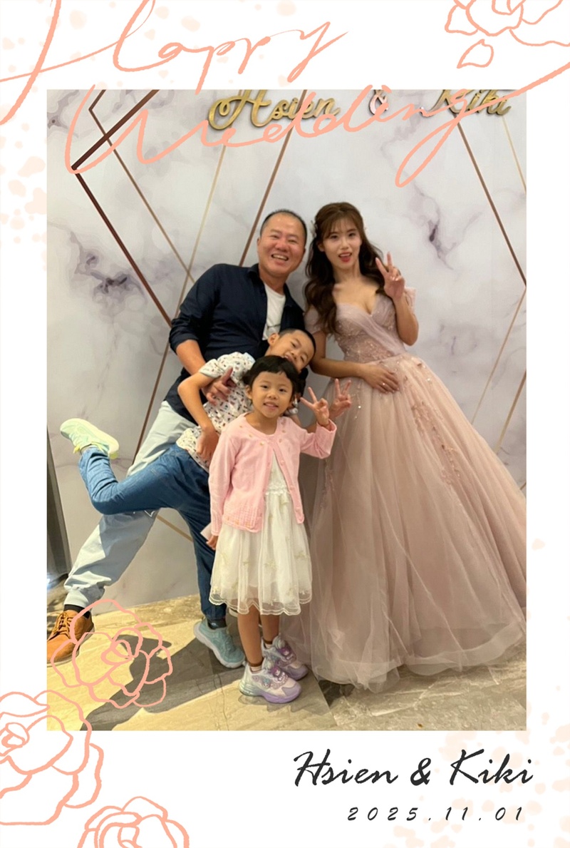 後來想到每次和閨蜜們聚會,大家都超愛拍照~於是靈機一動:婚禮上一定要有拍貼機!最好還能修圖,讓賓客都能拍出好看又滿意的照片❤️