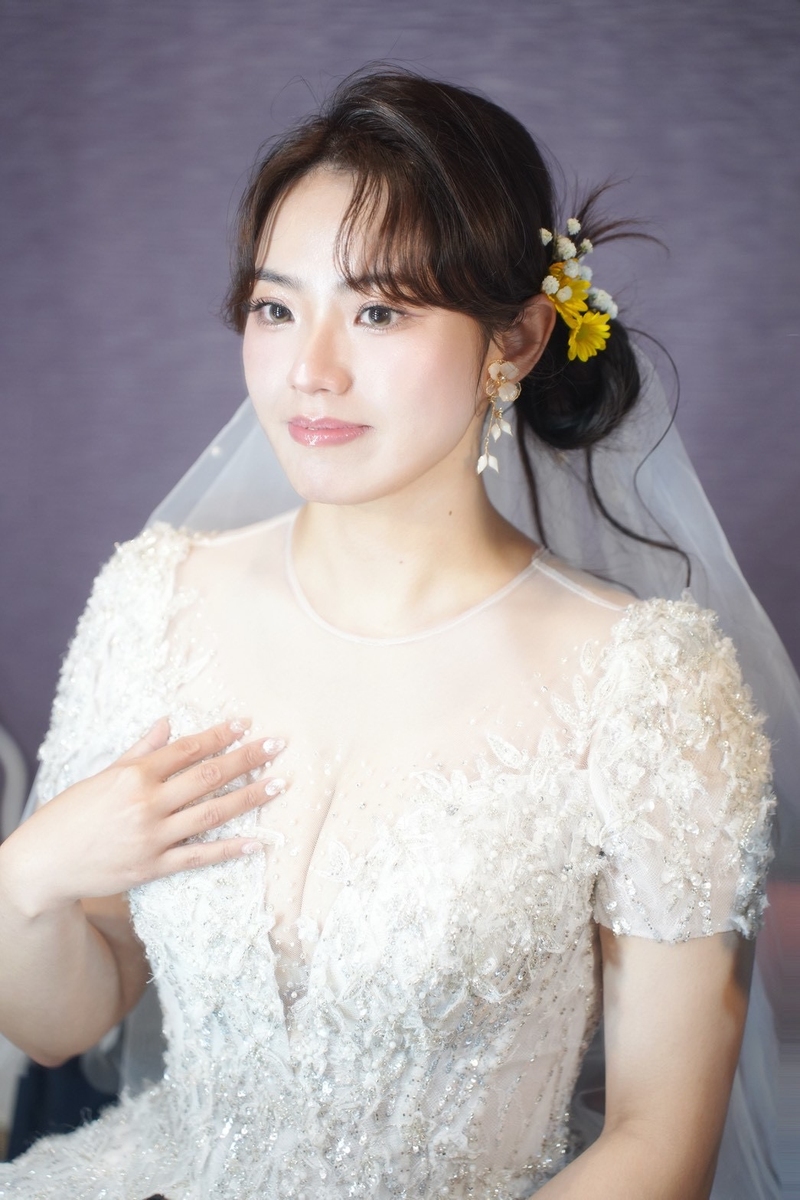 婚禮前溝通比較沒想法,但老師會根據禮服提供妝髮方向,讓我對造型更有想法。當天老師也有服務我妹妹畫親友妝,妹妹十分滿意。也有協助媽媽和婆婆的衣服整理,是非常體貼的人❤️