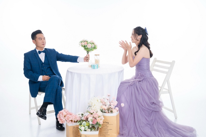 一走進時尚婚紗店內,門市接待小璇姊姊親切詢問我們的婚紗拍攝需求,很快的找到適合我們的婚紗方案,因訂婚時間不到一個月較為緊迫,隨即安排時間讓我們挑選婚紗、禮服秘書淑蓮也十分耐心的協助我們挑選和試裝,當天也協助排定下次與劉攝拍婚紗的時間及選片時間