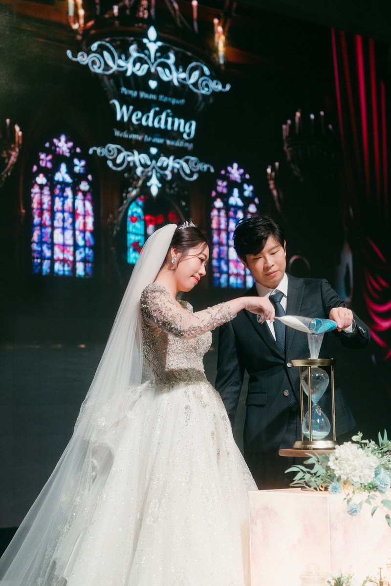 餐廳提供專屬音控,讓音效與配樂都能完美呈現。主持人挑選的音樂更是加分,每一首歌都恰到好處,襯托出婚禮的氛圍,讓我們與賓客都沉浸在幸福的旋律中。