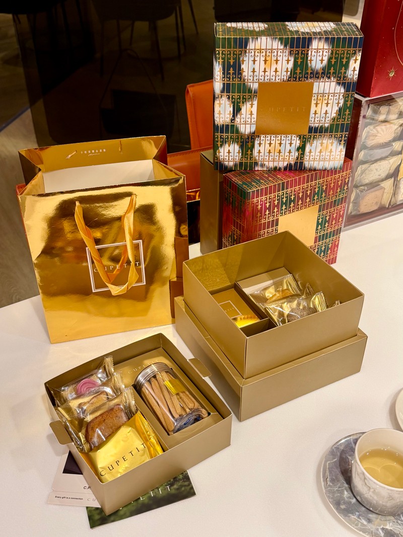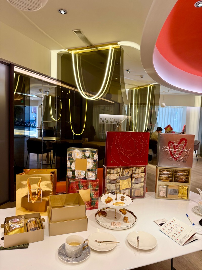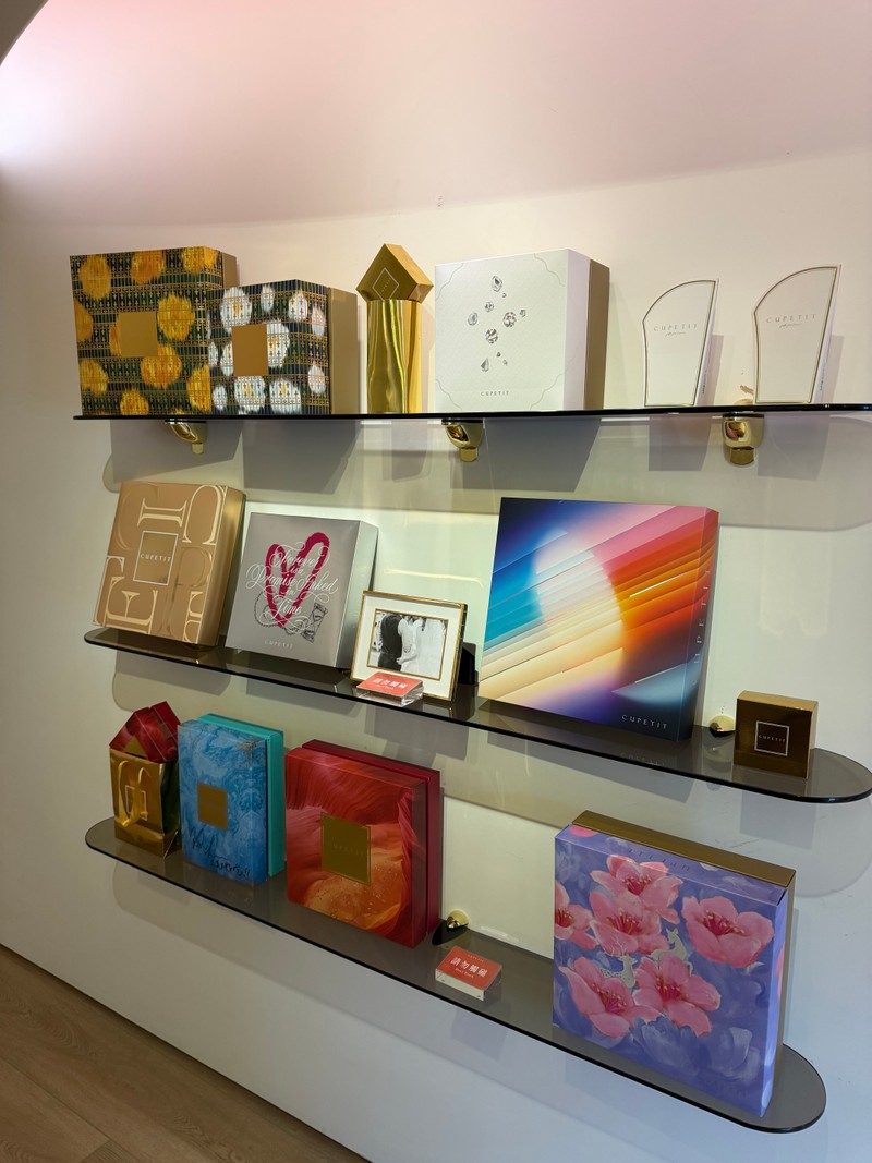 今天到 CUPETIT 卡柏蒂旗艦店試吃喜餅,整體體驗非常令人滿意 ✨一走進店內就被優雅舒適的環境吸引,空間與氛圍都很好!讓人能放鬆心情品嚐。服務人員親切又專業,會依照我們的口味甜度偏好與婚禮風格,細心介紹每款甜點與禮盒造型,給的建議也都非常貼心。