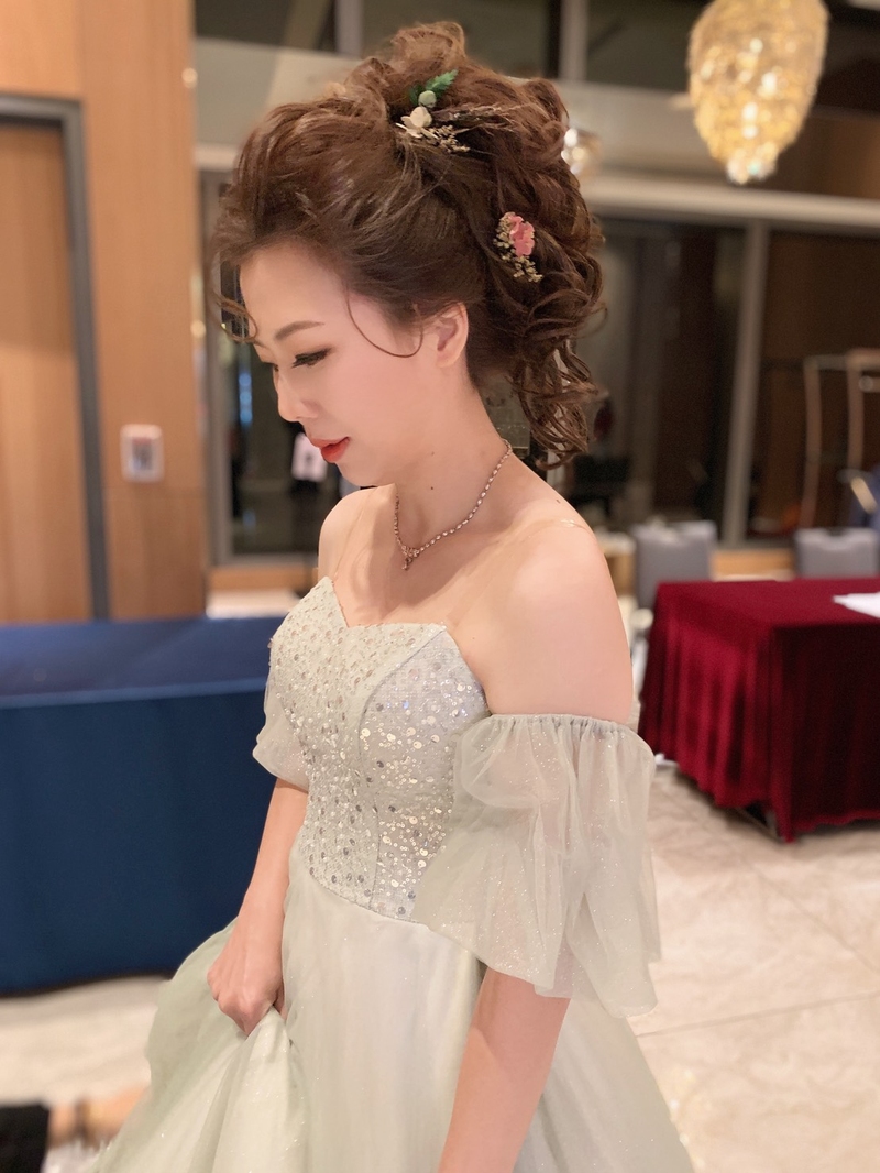 重點JoJo 不但隨時注意新娘妝髮,更重要的是會陪伴到宴客完全結束,再幫忙新娘整理東西,例如禮服整理與飾品回收,真的超重要!