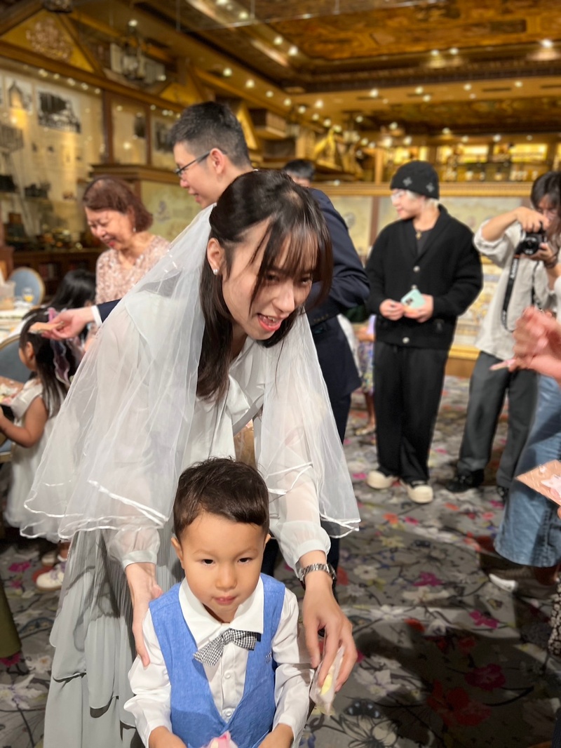 我們在11月15號的時候辦了一場溫馨的家宴,本來是辦在八月,後來計劃改變一直延後,和雪人談了又談,很有耐心的配合我們,一直到11月終於成功,我們有10桌,我們喜歡簡單溫馨的感覺,大家聊得很愉快,食物真的好好吃,現場小朋友跑來跑去,每一個服務的人都非常有耐心、和善,也會隨時顧到新郎新娘有無吃飽,整個體驗各種細節真的是太喜樂了,還會想要再回去吃一次💖