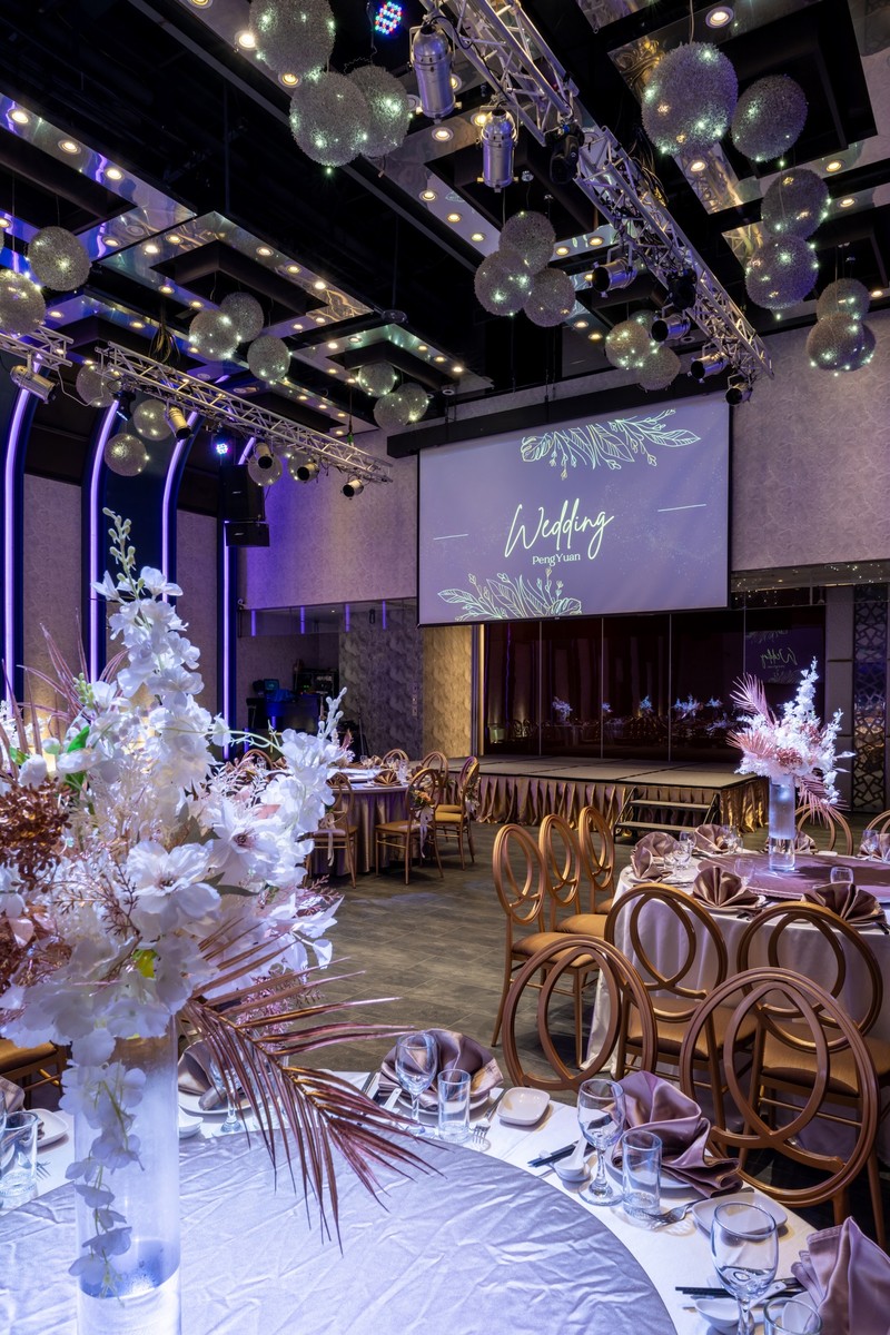 今天終於來台北彭園參觀宴客廳,一入場就有專業的專員吳慧瑛(綠綠)接待我們個別介紹所有廳房,參觀到最後還是最喜歡前衛夢幻聽,挑高八公尺加上寬敞的空間還有足夠深度的舞台,二次入場還可以選擇空降式的天鵝,整個氛圍感就很舒服。新娘梳化間還有獨立廁所。 另外如果選擇六樓宴客廳,整層樓的廁所不跟其他宴客廳賓客共用,也非常舒適,有個別獨立洗手台與鏡子。