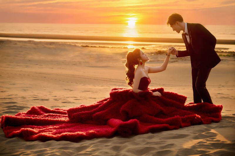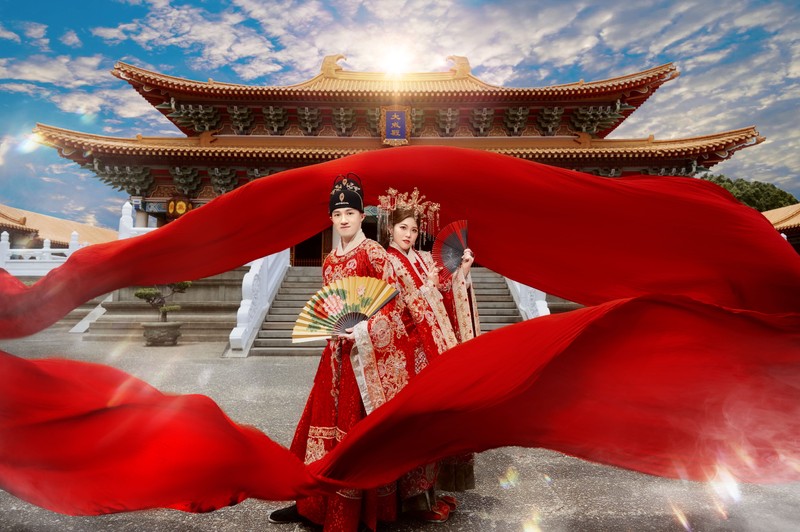 拍攝前的禮服試穿完全不需要擔心不夠選,反而是多到選不出來!另外不論是造型前的裝扮或是拍攝期望的方向都可以事前與攝影師和造型師做討論。在這邊也要感謝攝影師大邱,依據我們預先想好的幾個拍攝地點,引領我們選擇適合的禮服搭配,並共同討論拍照想呈現的風格與喜好。也感謝造型師Anda,得知我喜愛浮誇裝扮後,在拍攝當日還提早到化妝室為了幫我拿最浮誇的中式頭飾!