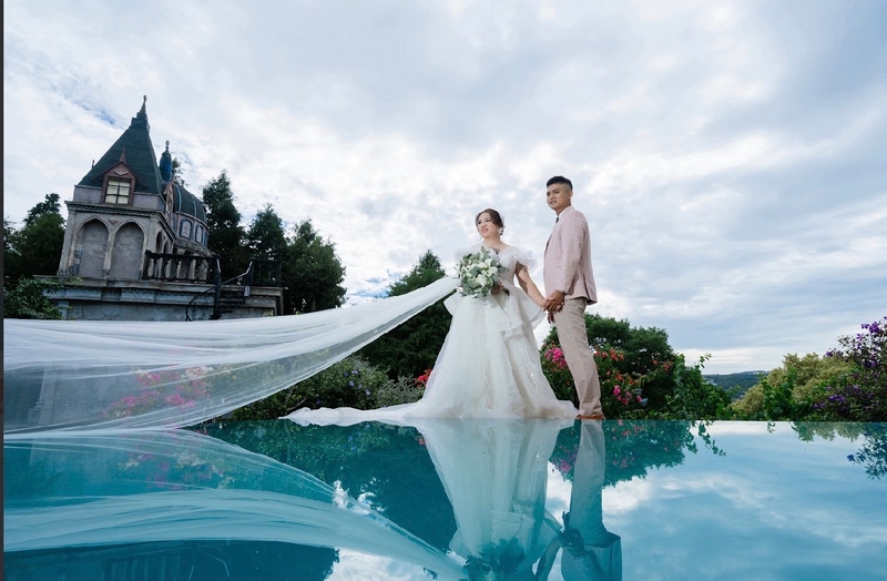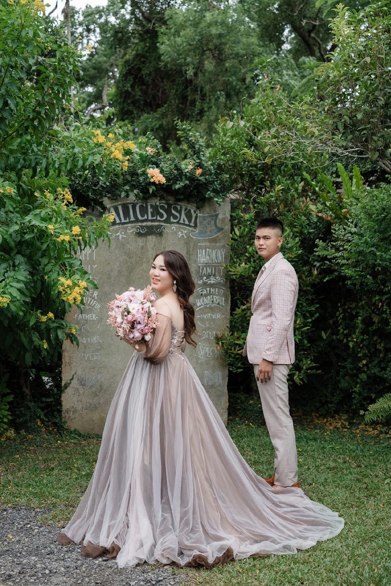 到拍攝當天,因為北部還是下著雨,很害怕到了婚紗基地天氣不好,很難拍出美美的婚紗照,浪費了化妝師紫妍姊姊精心打扮的髮型妝容,結果天助我也,意外的天氣超級好!