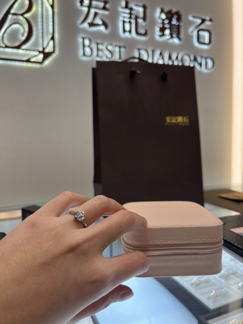 當初為了尋找一枚意義非凡又符合預算的鑽戒,我們比較了許多店家,最後選擇宏記鑽石,正是看中其口碑與實惠的價格。實際到訪後,更感受到他們的專業與誠意。店內環境舒適,沒有壓迫感,接待人員的態度非常親切客氣,耐心聆聽我們的需求與故事,而非一味推銷高價商品。