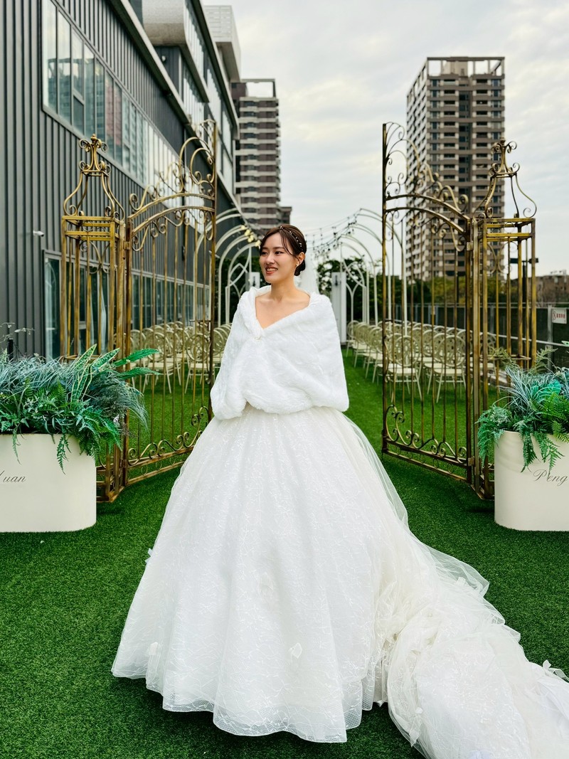 當天服務的小管家小茜也很罩,全程跟著新娘幫新娘整理裙擺!