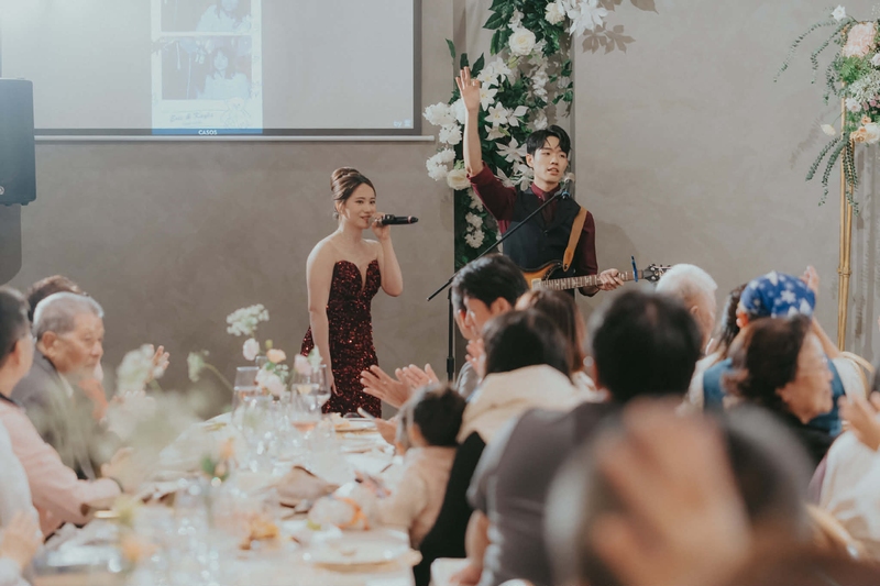 這次我們選擇的是三機拍攝方案,也就是同時有三台攝影機從不同角度紀錄。當下可能沒什麼感覺,但拿到成品後真的會發現很多驚喜,像是賓客家人偷擦眼淚的瞬間、爸媽在台下開心雀躍的表情,或是朋友起鬨、笑到不行的畫面…很多都是我們當天完全沒注意到的小細節,回家重看才發現原來發生了這麼多事。