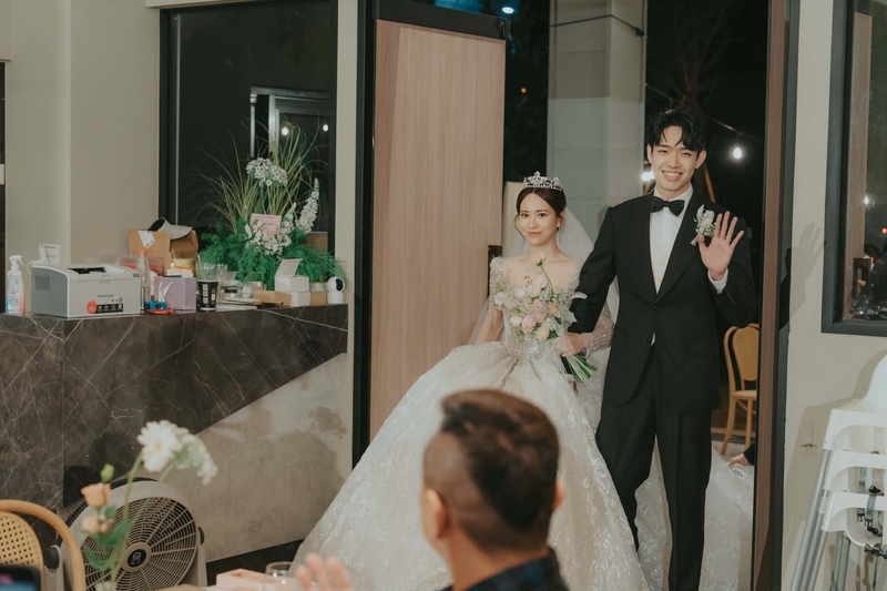 主要和我們接洽的是阿布老師,從一開始就給人很安心的感覺。簽約時會先確認基本資訊,婚禮前一週也主動打電話跟我們對流程,把當天會發生的事情全部走過一遍。婚禮當天,他們比我們還早到現場架設備。開拍前拍攝夥伴也都會提醒我們,站哪裡比較好看、手要怎麼放比較自然、拍特寫時怎麼動作不會尷尬。拍攝過程中也不會讓人有壓力,反而像朋友一樣引導,整體氣氛很放鬆。真的會感覺到他們不是「來工作」,而是真的很投入在每一場婚禮裡。