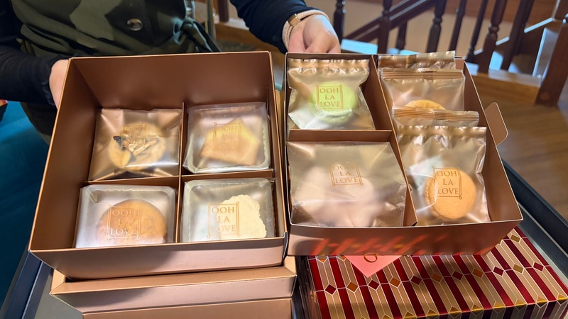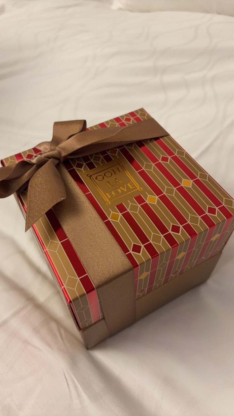 最後是禮盒外觀,我跟男友都同樣在意禮盒外觀要漂亮,OOH LA LOVE非常完美的符合我的需求——超有儀式感!不管是燙金的禮盒外觀還是裡面介紹喜餅口味的小菜單,甚至是禮盒的提袋,都非常合我的心意,最後還送了一個小禮盒作為禮物,也方便我們帶回去給雙方家長看看+試吃,家長試吃完也覺得很好吃,是長輩也可以接受的西式喜餅喔!