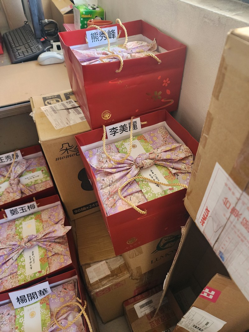這次喜餅老婆大人找了不少家,吃了不少家試吃,但總是會有少了點什麼的感覺,喜歡某家的蛋糕餅乾,但不滿意盒子品質,喜歡某家的外觀提袋,但裡面的內容物太少無法加量等,一開始我以為我無所謂不在意,但後來覺得還是很在意品質外觀與內容物,於是我就自己上網搜尋,就找到這家 七見櫻堂,也因為有點趕,當週本來要預約板橋店試吃(包廂式),看起來很舒適,但都額滿,後來跑到師大店,沒有板橋的華麗,人潮也比較少,因為我兩間都去過,師大給我的感覺是比較明亮與寬廣,試吃就直接在旁邊桌椅吃起來,還好人潮不是很多,我跟老婆從下午一點半吃到四點半,店員也沒有因此不耐煩趕我們😂,而且還有貓咪餅乾可以試吃哦!因為我們喜歡這家的盒子(雙層)與風呂布,且有多種顏色可選,這次選冬季限定的冬霞紫,與胭脂紅,另外盒子款式也相當多種,也有婚禮小物,相當豐富,自選內容物需要預定20盒以上,覺得都很滿意,最後試吃完就決定是你了!先付訂,之後再付尾款,且可以分開收件地址與不同時段寄送,相當方便,推薦給迷茫不知道要選哪家的新人們!