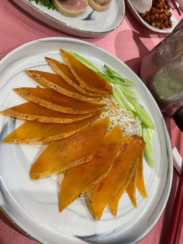 烏魚子前菜: 擺盤精緻,烏魚子厚實且色澤金黃,搭配爽脆的蒜苗,第一道菜就讓長輩們點頭稱讚。