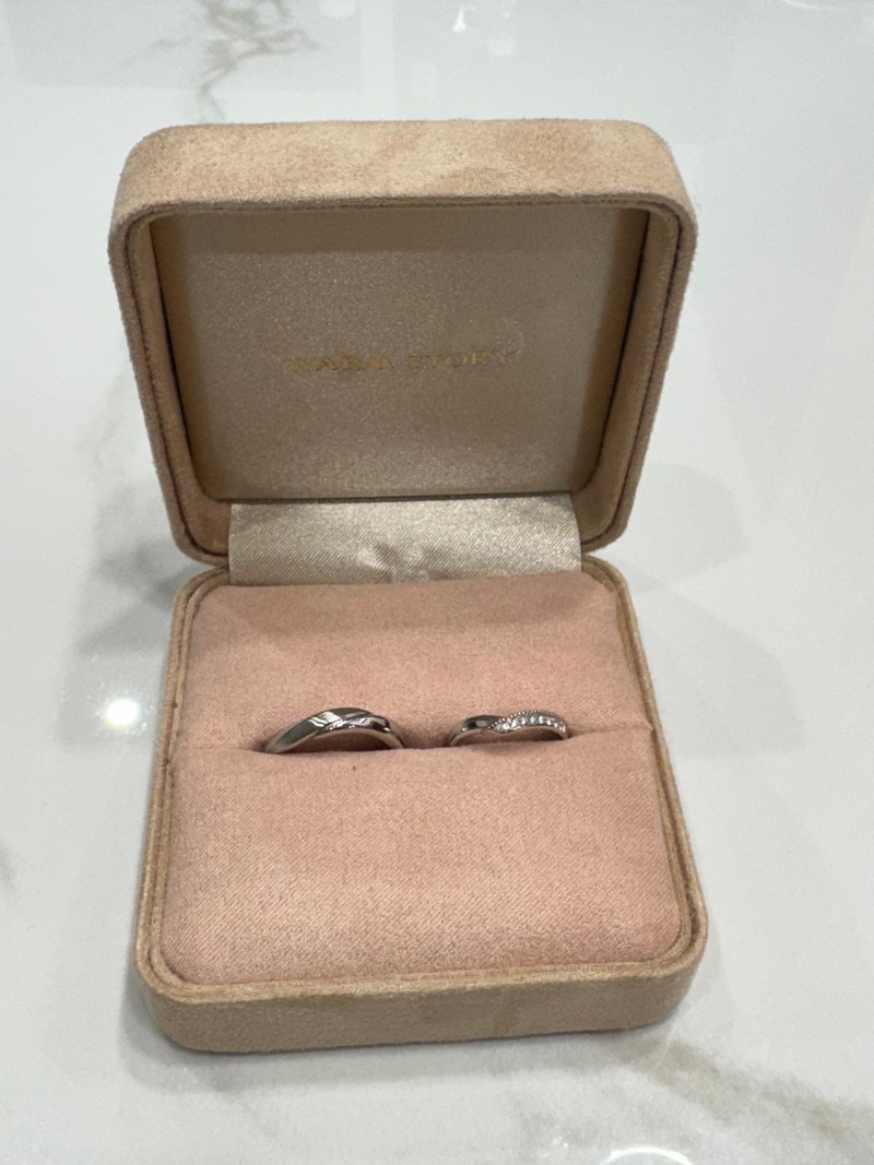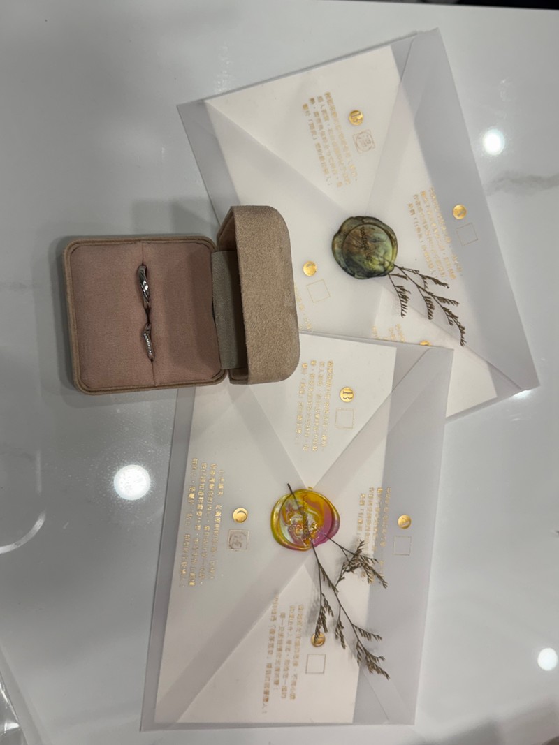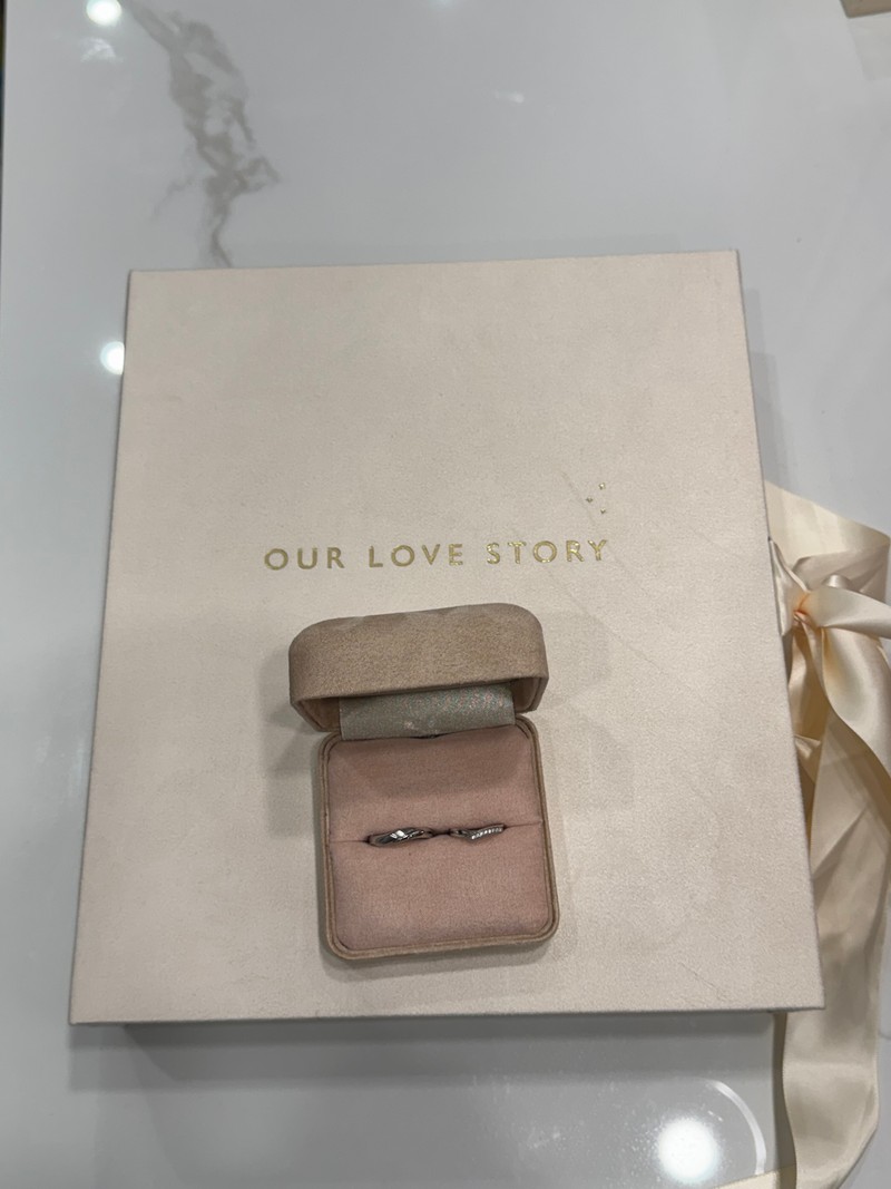婚禮終於結束了~終於有時間來寫一下購買婚戒的心得,我們選的是恆溫故事,最一開始我跟老公預約在台北店試戴,服務人員很有耐心的介紹各種款式,從材質到設計理念都詳細的一一為我們說明,最後找到了心目中理想跟喜歡的戒指,而且還可以刻字,價格也在我們預算內,所以就開心的下定了。戒指製作需要等三個月左右,因行程規劃所以後來選擇在台南店取貨,一進店裡就覺得非常溫馨舒服,整體空間明亮帶有點復古的氛圍,我們帶著放鬆愉快的心情領取戒指,實品真的比樣品漂亮好多,碎鑽好細緻閃亮,另外也在現場完成我們的故事書(最後一頁是戒盒的設計,很有巧思)跟一紙情書(可以選擇自己喜歡的顏色用蠟封起來),儀式感滿滿,並且還一起寫下未來各個階段要一起達成的目標,很感動又期待,服務人員也在旁邊幫忙拍照記錄下這些重要時刻,是一個很特別的回憶,非常推薦恆溫故事給正在尋找婚戒的人~