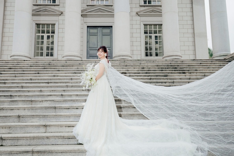 我是一個沒有想法的人,所以我很謝謝幫我找禮服的禮服師,還會幫我想辦法,知道我喜歡浮誇,還幫我找來了最新的披肩來讓我搭配
