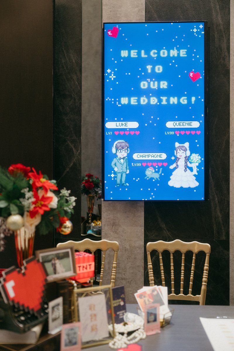 這是我覺得最加分的地方!彭園有專屬的音控團隊,當天的影片播放、燈光變換與音樂節奏抓得精準無比,完全沒有出錯。有專業團隊在後頭撐著,新人在台上真的只要美美地出場就好。