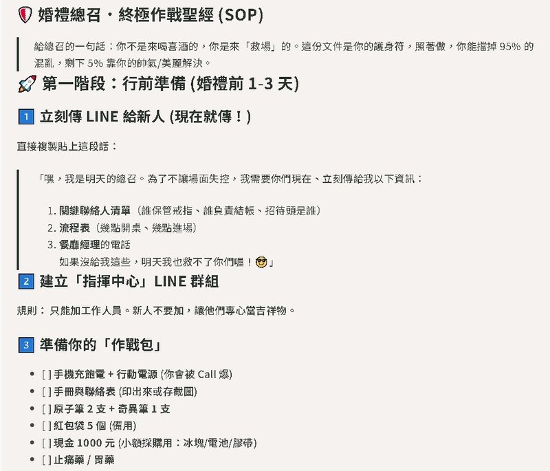 是總招待還是現場場控?結果意外挖到這篇超強攻略:《婚禮總召為什麼變稻草人?這份SOP讓你從路人變控場大神》🌾✨