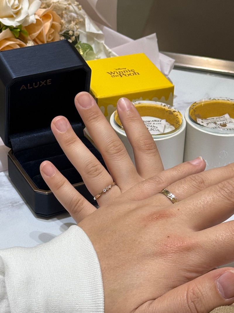 迪士尼小熊維尼系列對戒💎 宛宛 推薦 1 次熱心留言 2026-03-08 尋找對戒的時候,經過Aluxe 亞立詩中壢新生門市,我們的顧問是Yuna,非常的熱情和親切,介紹每一款戒指,都很專業,這次選擇迪士尼小熊維尼系列,女戒有黃鑽和白鑽,小花的造型很可愛,看起來很有氣質,男戒交錯的黃K金線條設計,也很有獨特性和設計感。#中壢婚戒推薦 #對戒 #亞立詩 推薦商家 ALUXE 亞立詩 評價 (9950) 覺得 讚爆了超推 ALUXE_亞立詩 000 439 次瀏覽 讚 留言 收藏 分享 分享 分享至 LINE 分享至 Facebook 複製連結
