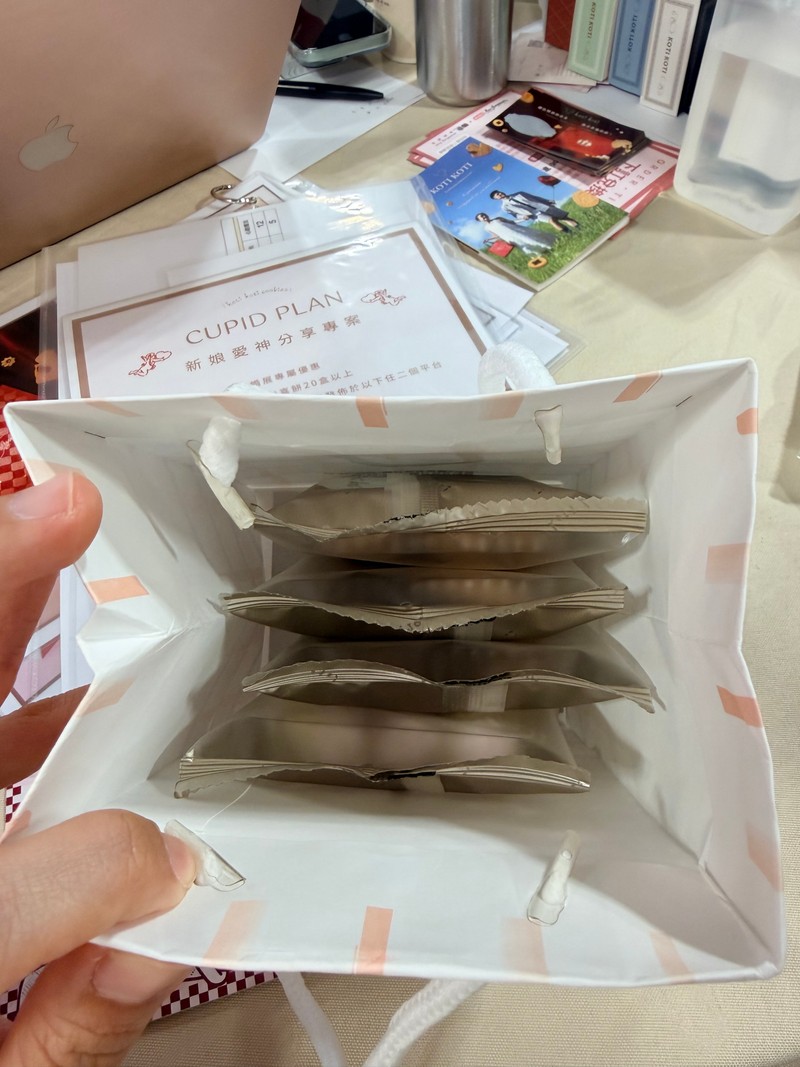 決定下訂之後因為想試吃不同口味的餅乾,業務人員很熱心的幫我們尋找每一個種類,光試吃就超級飽!下訂之後除了有滿額優惠,還有早鳥禮(贈送桌上禮)、現場刮刮樂抽獎(抽到1000元折價券),真的好吃又好玩!