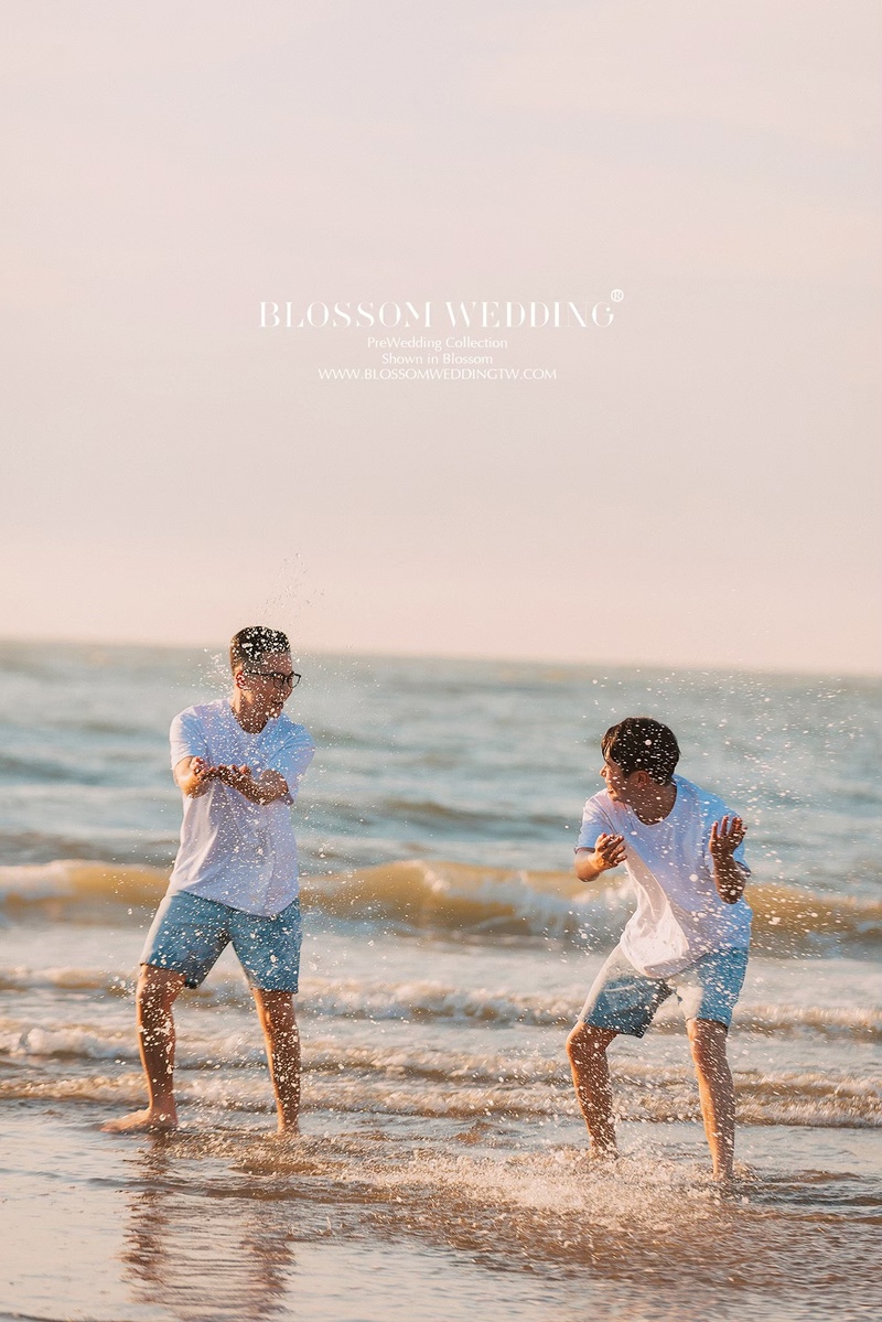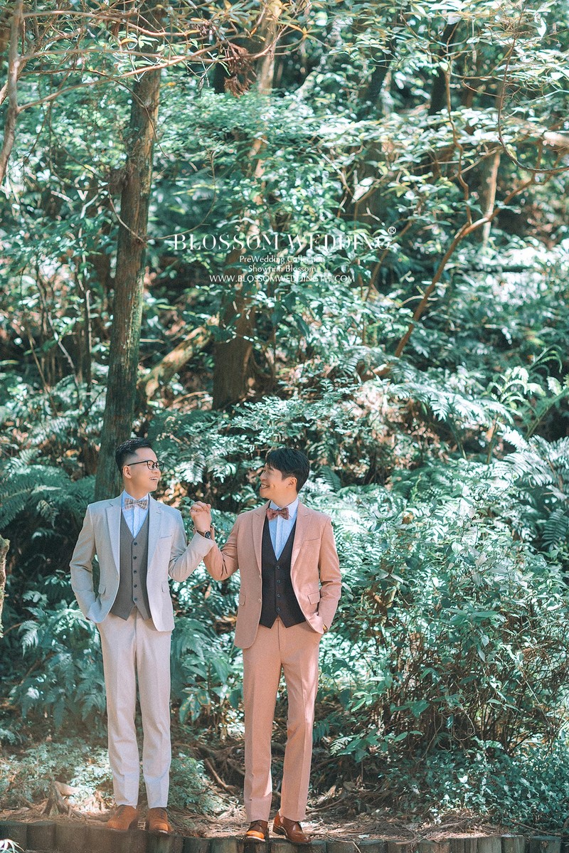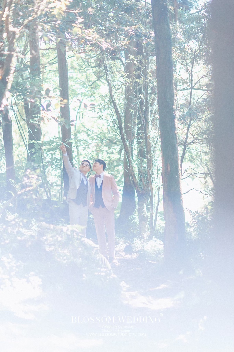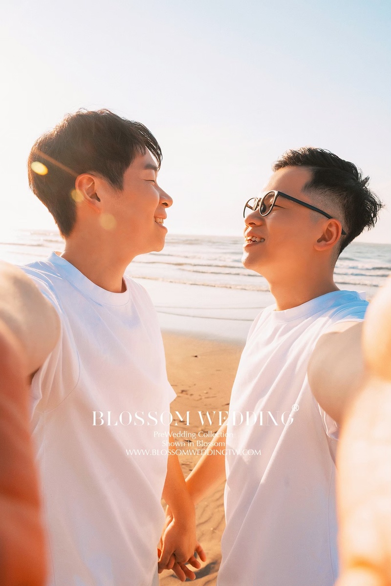 原本有點擔心兩個男生拍婚紗會不會不太自然,但其實完全不會。攝影師很會引導動作,燈光師也一直在旁邊帶氣氛,整個拍攝過程非常輕鬆,很多畫面都是在很自然的互動中被捕捉下來的。室內棚拍呈現出高端時尚的質感,在陽明山黑森林拍出浪漫唯美的氛圍,而在沙崙海灘則多了幾分活潑動感又不失帥氣。即使這些地點當天都有不少新人拍攝,但從拍攝過程到最後看到的成果,都能感受到照片裡呈現的是專屬於我們的樣子。