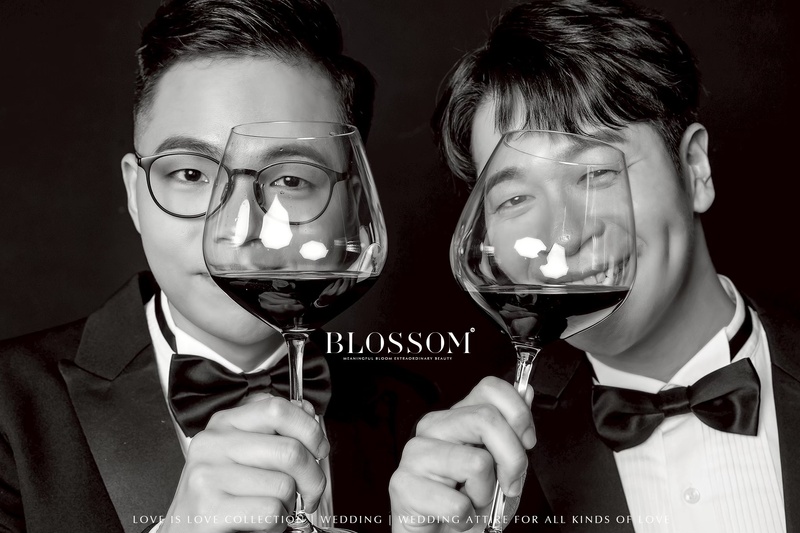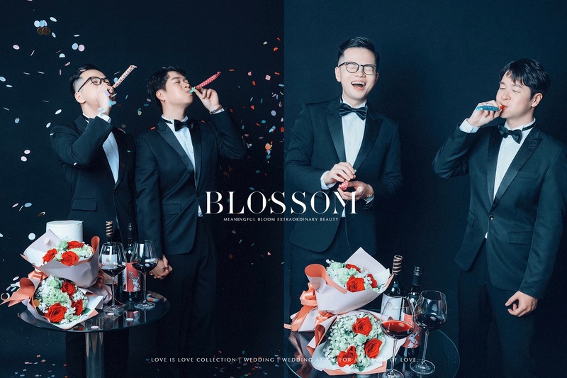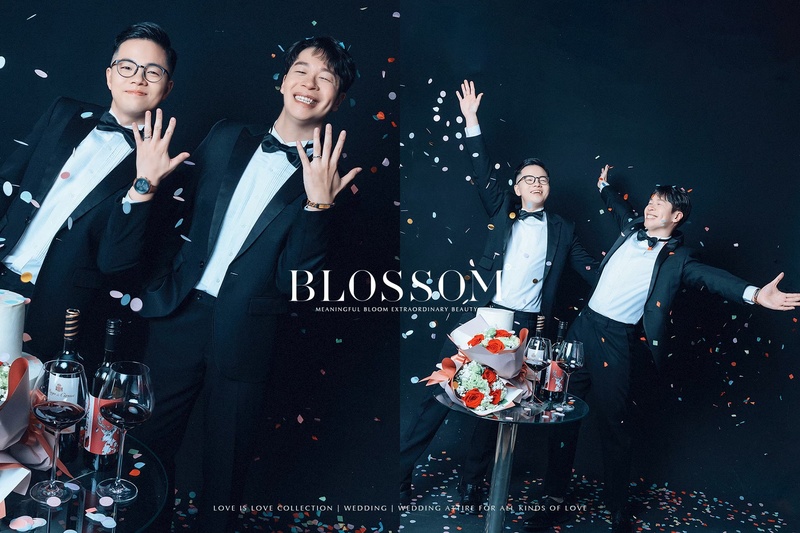 一開始在找婚紗攝影時,其實有點徬徨,因為網路上能看到的 男男婚紗作品不多,也會擔心一般以男女婚紗為主的團隊,是否能理解並呈現我們想要的感覺。我先生的好友之前就在水花婚紗拍過婚紗,她的照片成果很好看,也很推薦水花的服務,所以我們就直接聯繫水花來了解。