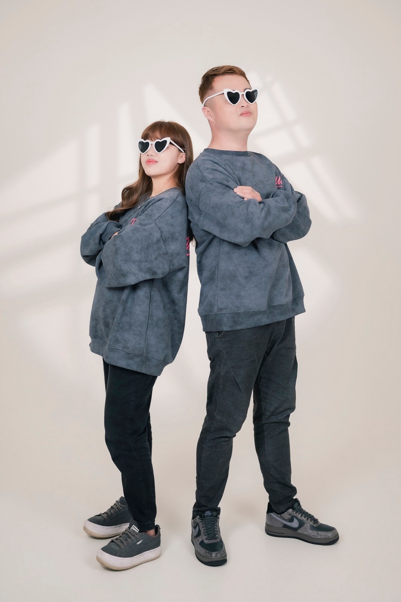 攝影當天,造型師小伶非常辛苦,也非常用心,妝容幾乎不用溝通就達到我們喜歡的狀態,因為大小眼的關係,雙眼皮貼麻煩了她好久好久,但是她非常有耐心地幫我們處理得非常完美,真的讓我們超開心的。攝影師阿喨,談吐非常幽默,讓本來很緊張的我們很快進入狀態得以拍攝,還指導了有點"肢障"的我們擺姿勢,真的給一個大心。燈光師阿朗,則是超級骨力,一下幫我們當範本,擺各種笑點十足的姿勢給我們看,一下又跑東跑西幫我們整理衣角,拿道具,甚至還要幫我們帶路,非常的辛苦。