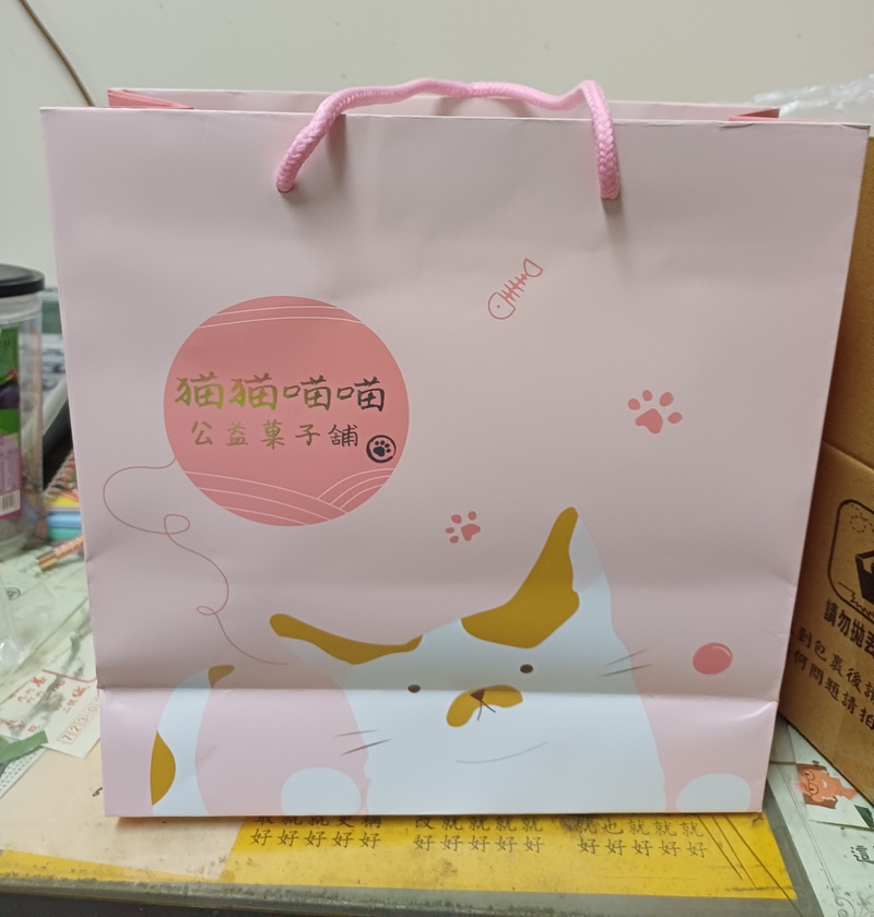 我們在選喜餅的時候,其實就已經鎖定公益喜餅了,當時的想法也不外乎是喜憨兒或蒙恩等等,但某一天到我們一直想養卻因為工作關係沒辦法飼養,只好沒事就去擼擼的流浪貓餐廳時,就突然想到,沒有貓貓狗狗的公益喜餅嗎?結果還真的有,挑挑揀揀下,選了從外觀開始就深得我們心的猫猫喵喵公益菓子舖。