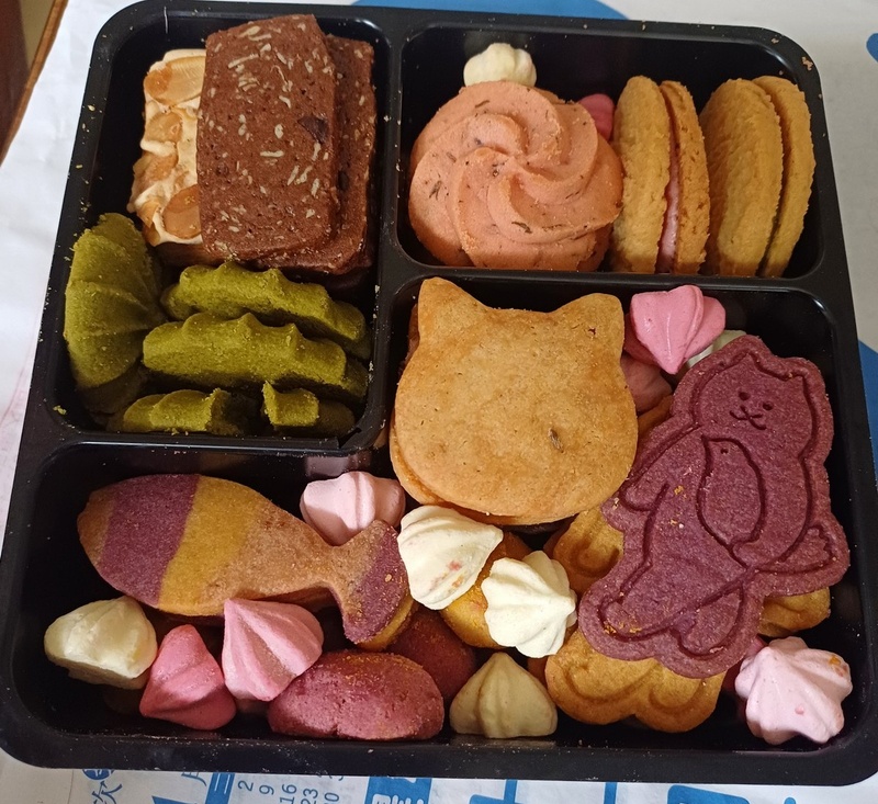 味道上,沒有一般喜餅的甜膩(不然貓貓就不能吃了),我最喜歡的其實是喵咪夾心餅乾,香氣十足,所以在訂了一盒試味道後,立馬直接訂了130盒,然後私心定不同的款式分給不同親友,搞不好能夠蹭蹭更多口味(欸