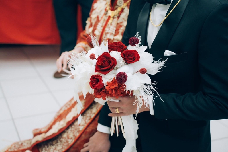 可能是看到我還是很猶豫的樣子,就建議我可以選擇紅白色系的捧花,