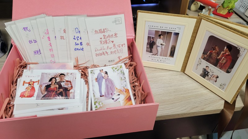 2. 可當作謝卡給賓客(謝卡還只有那幾張照片重複印一疊一疊的,拍拍印可以每張都不一樣的照片!)