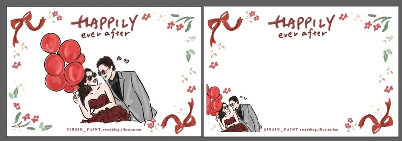 簽約後會先幫我們繪制一版專屬於我們的似顏繪圖框