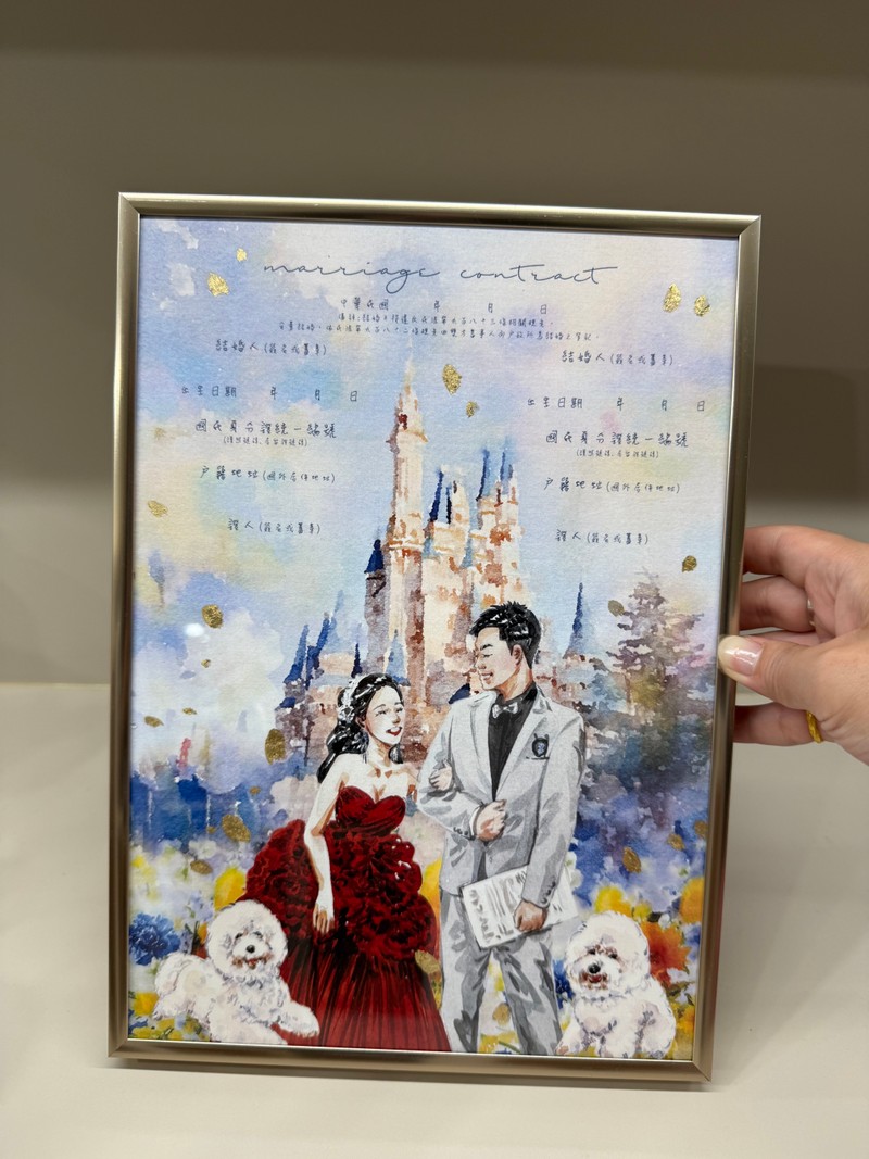 於是就想說那我要請他畫我的結婚書約!