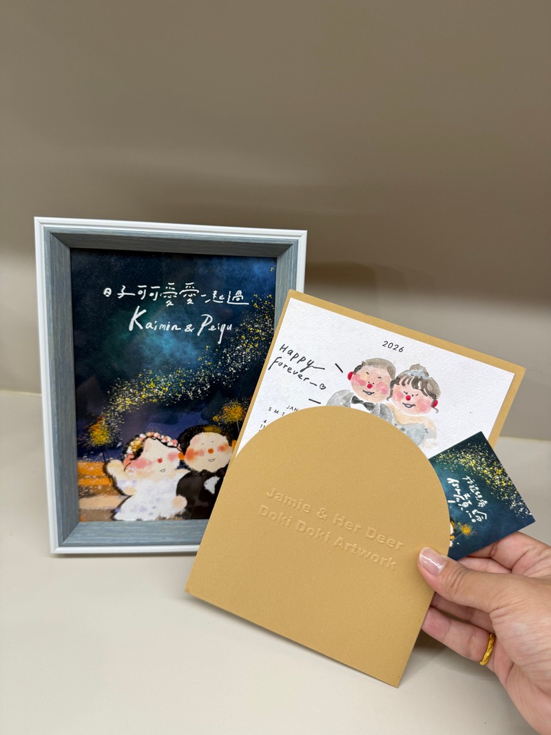 一樣簽約後會幫我們客製一份我們的似顏繪圖卡!