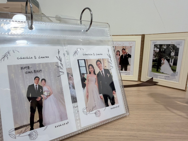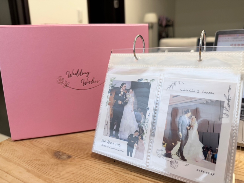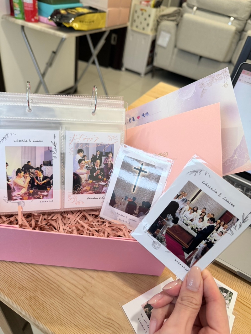 在宴客的過程中我們沒有特別注意到,後來才知道原來拍拍印的團隊也一直在婚禮的各個環節中跟拍,跟拍出來的照片最終做成了一本紀念相簿和照片夾送給了新人,記錄了一進時在背板前的合照、可愛的花童和儐相、雙方家長的合照、一進的時候的側拍、香檳塔儀式的側拍、入主桌時的側拍、二進活動的各種畫面、看 SDE 時的側拍的等等等等,看著這本紀念相簿,彷彿再經歷了一次這美好又沒有遺憾的一天~收到這份禮物的時候,眼淚都要流下了~我們時常翻看回味,真摯的感謝拍拍印的團隊,專業、認真、貼心,替我們留下了美好的紀念 ❤️