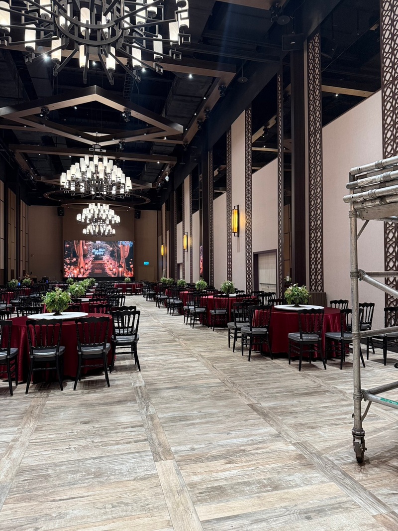 彭園會館廳房都是特別挑高的,整體很氣派,空間也很足夠不會過於擁擠,又有室內停車場,停車位數量也很多,不用擔心賓客停車問題。