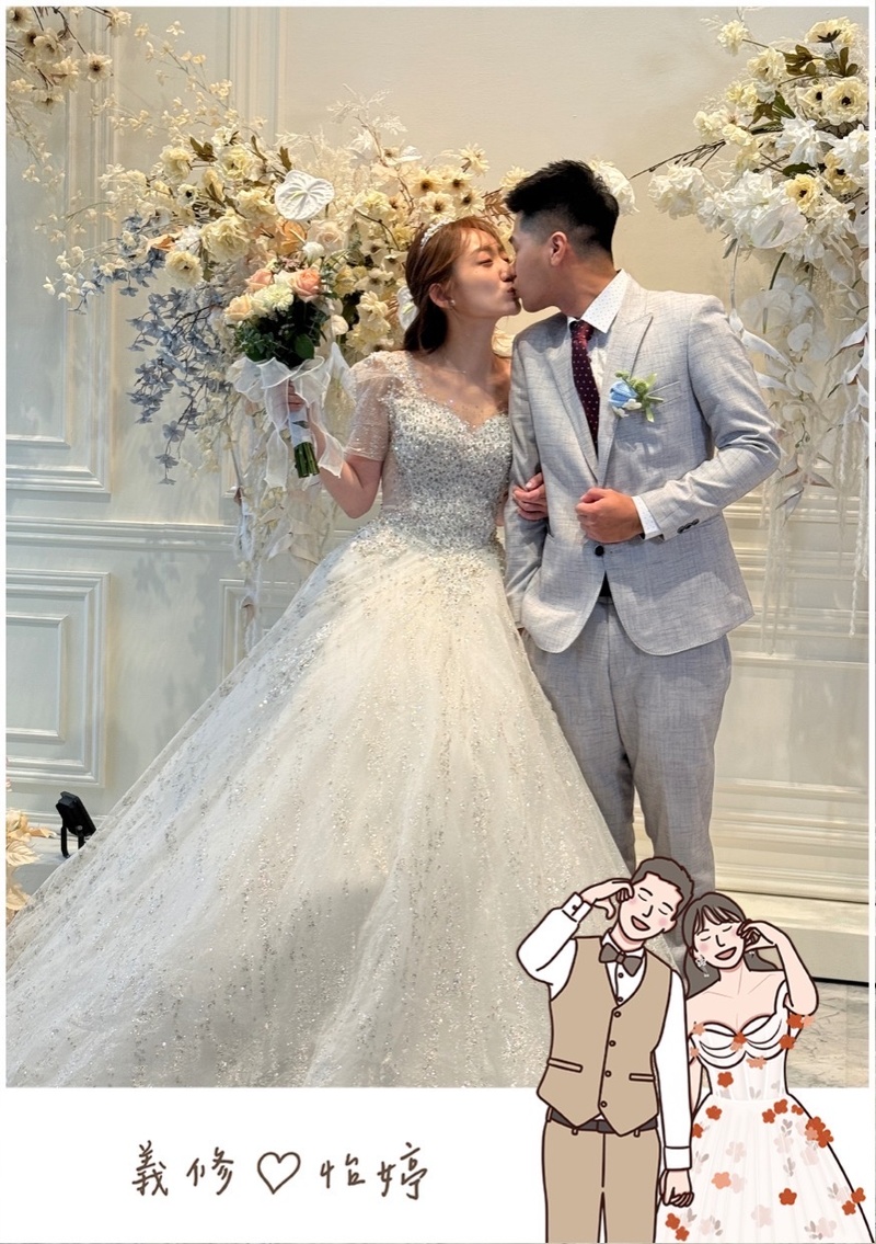 婚禮當天工作人員帶了很多小道具供賓客使用,讓賓客不只是尷尬站著比✌️,可以有更多有趣的照片,覺得很適合我這場長輩居多的婚宴~最值得誇讚的是工作人員會熱情的幫忙拍照,婚禮前會特別詢問需要關照的桌號,期間有空閒工作人員就會去桌邊幫親友拍合照印出來,準備進場之前的等待時間,工作人員會快速的cue我們拍張合照!我覺得很棒~~~因為這是其他賓客拍不到的照片,現在被好好保留下來了❤️