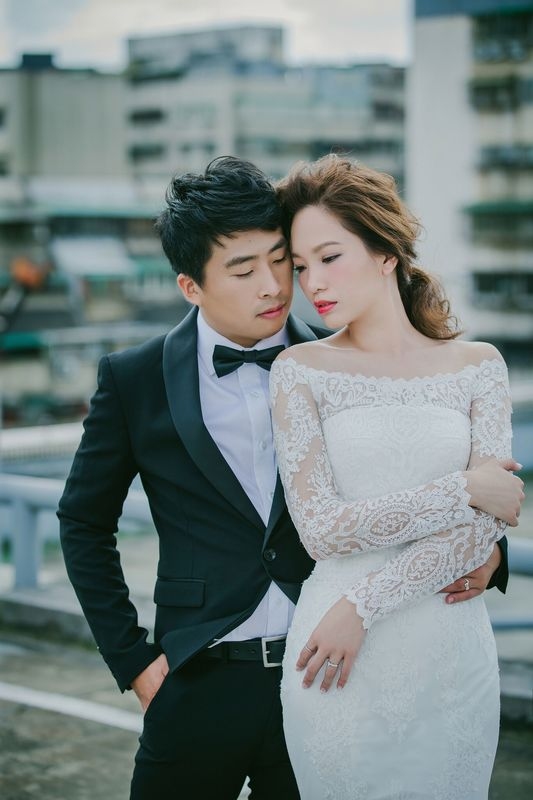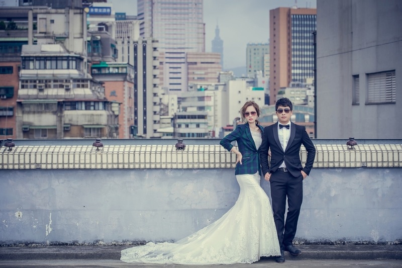 我與老公都是設計相關科系畢業,所以了解自己的喜好,比起公主風格,都會風更適合我們,所以我們白紗拍了2種風格,其中一個是都會風格,而攝影師-有惟建議的地點讓很多朋友都以為我們去香港拍婚紗,有時裝雜誌的氛圍。