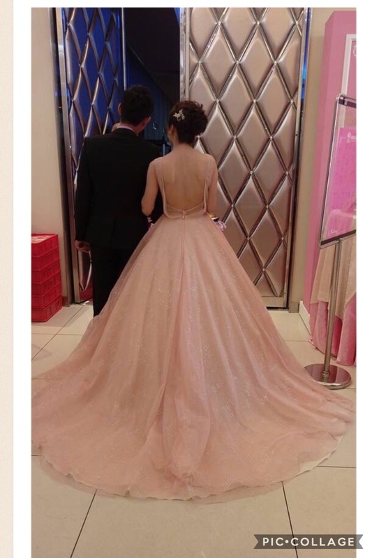 這件粉色禮服是我的最愛,雖然照片看不出它的手工細緻感,但是當天穿出來也是稱讚頻頻啊!!