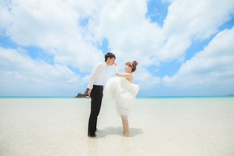 本來9月才要拍婚紗,後來臨時改去沖繩