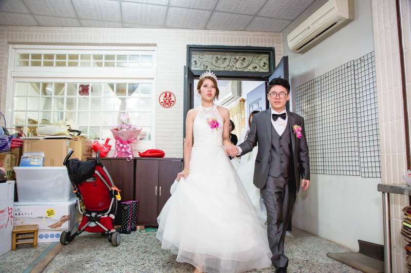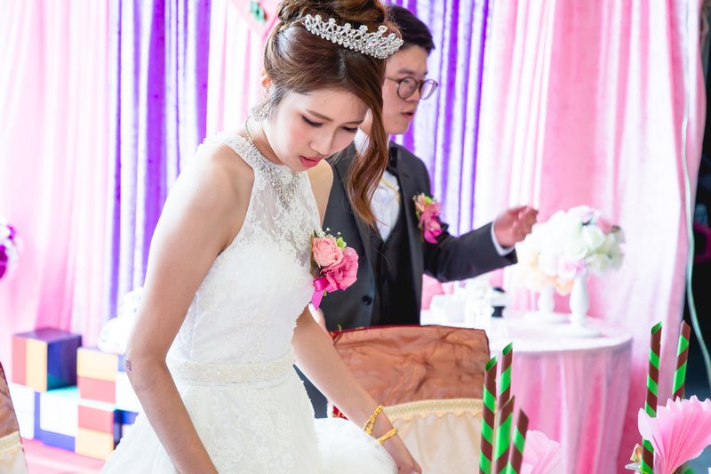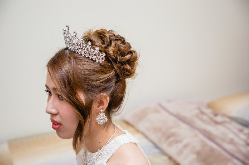 第一套白紗盤起來後面的髮型 因為時辰關係所以直接弄好白紗造型 晚點宴客會用皇冠在上面