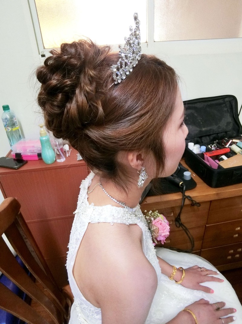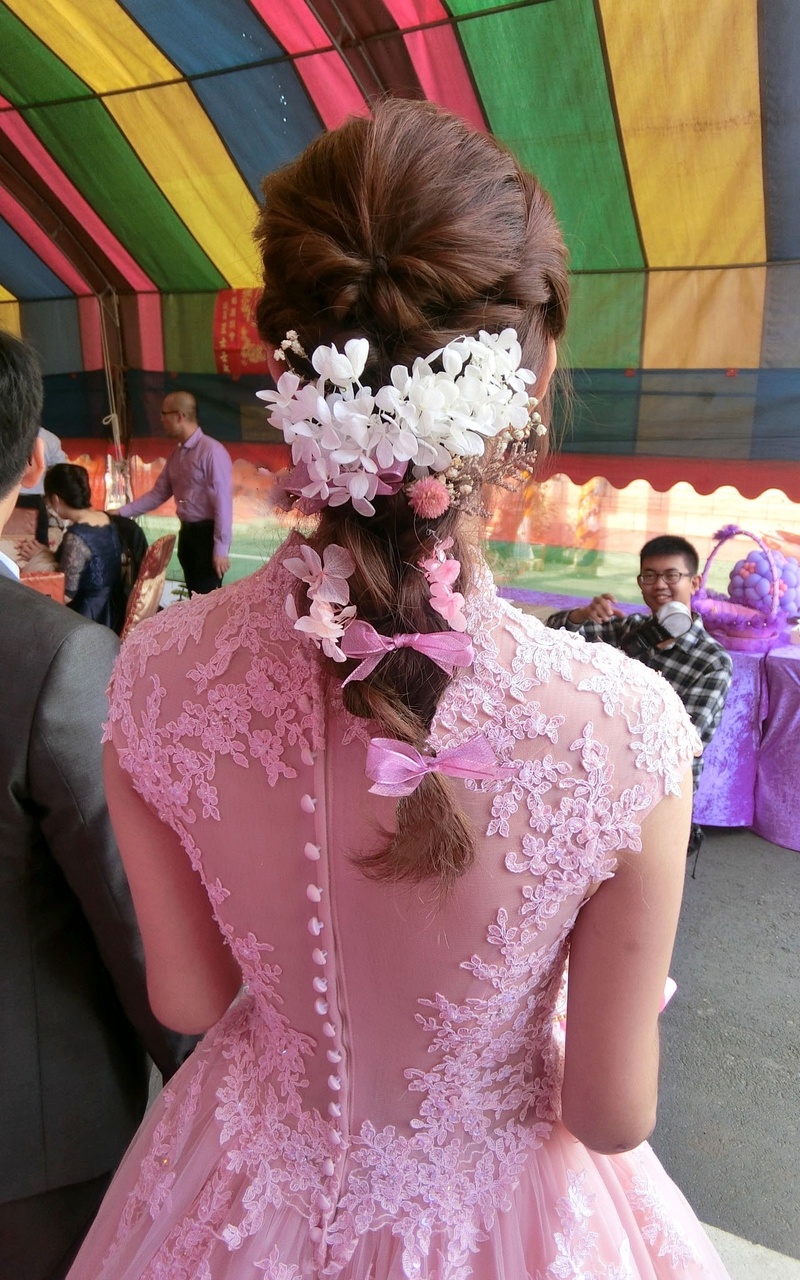 這張是媽媽側面髮型的樣子 晚點宴客會使用髮飾點綴