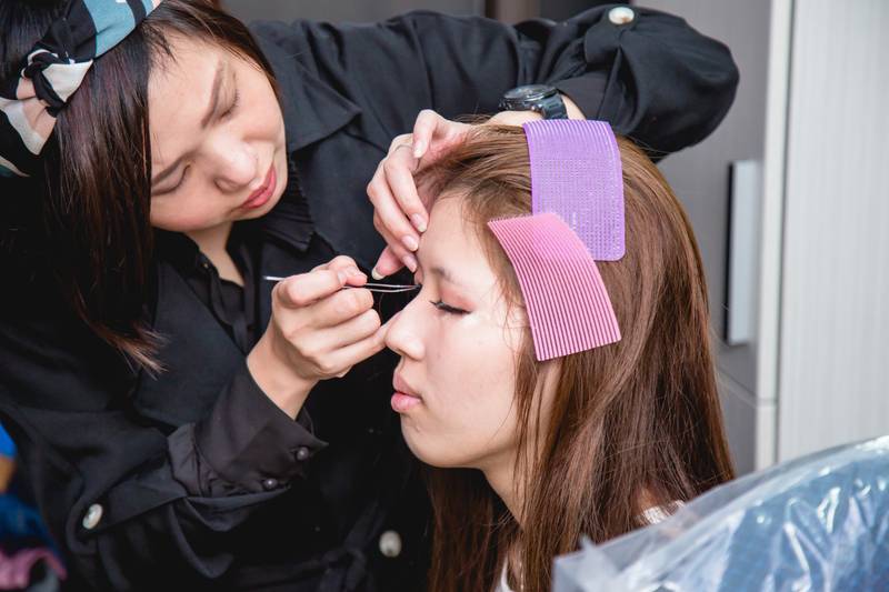 眼睫毛一根根種 覺得好細心^^