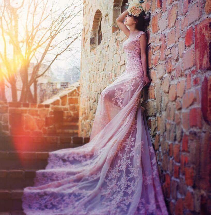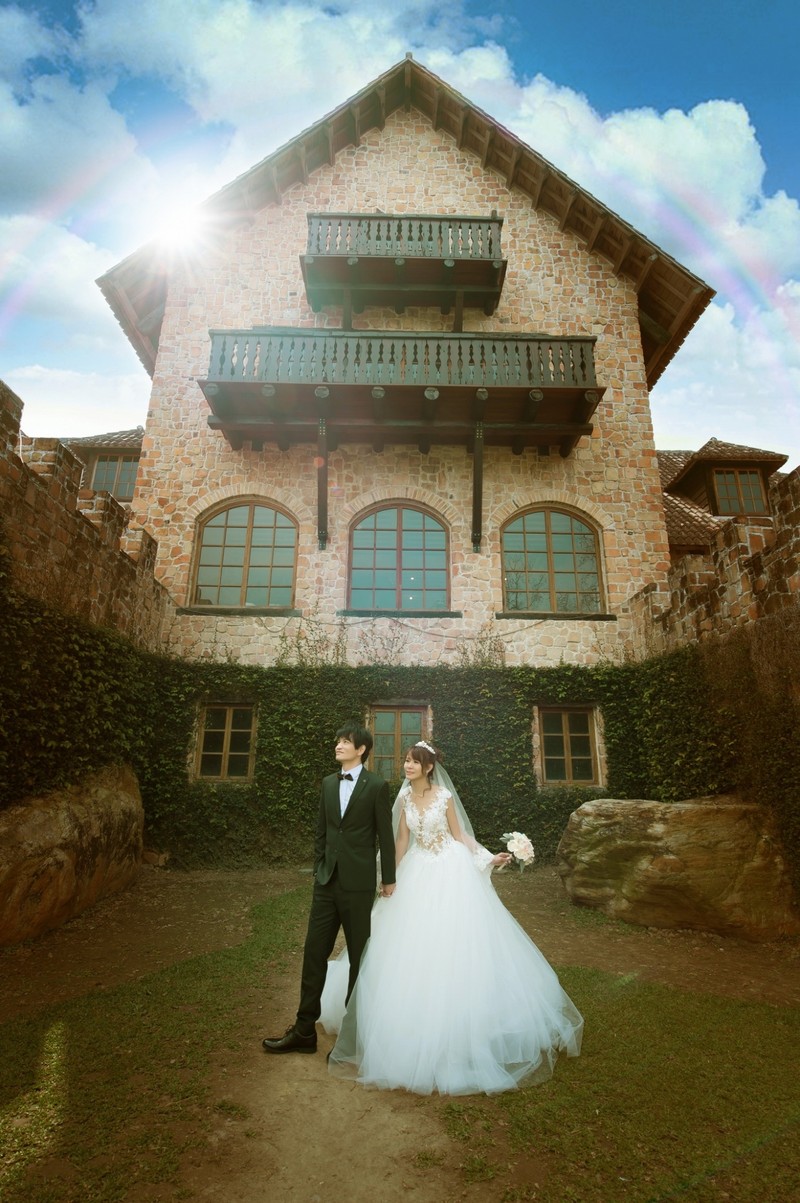另外也選了粉色微裸紗的禮服,拍照效果非常好,一般婚禮除非是前短後長款式,很難呈現腿部的優美,但這件在適合的光線下,微微呈現腿部線條,非常優美。