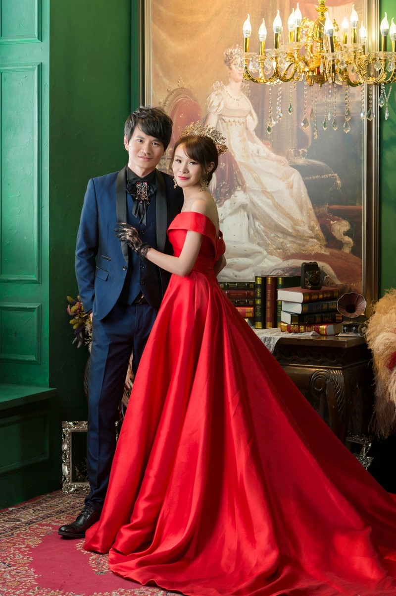 再來就是選了一件紅色禮服,因為前面三件都走甜美浪漫氣質風,想說一定要有個是有女王氣勢的,拍照效果也很好喔。