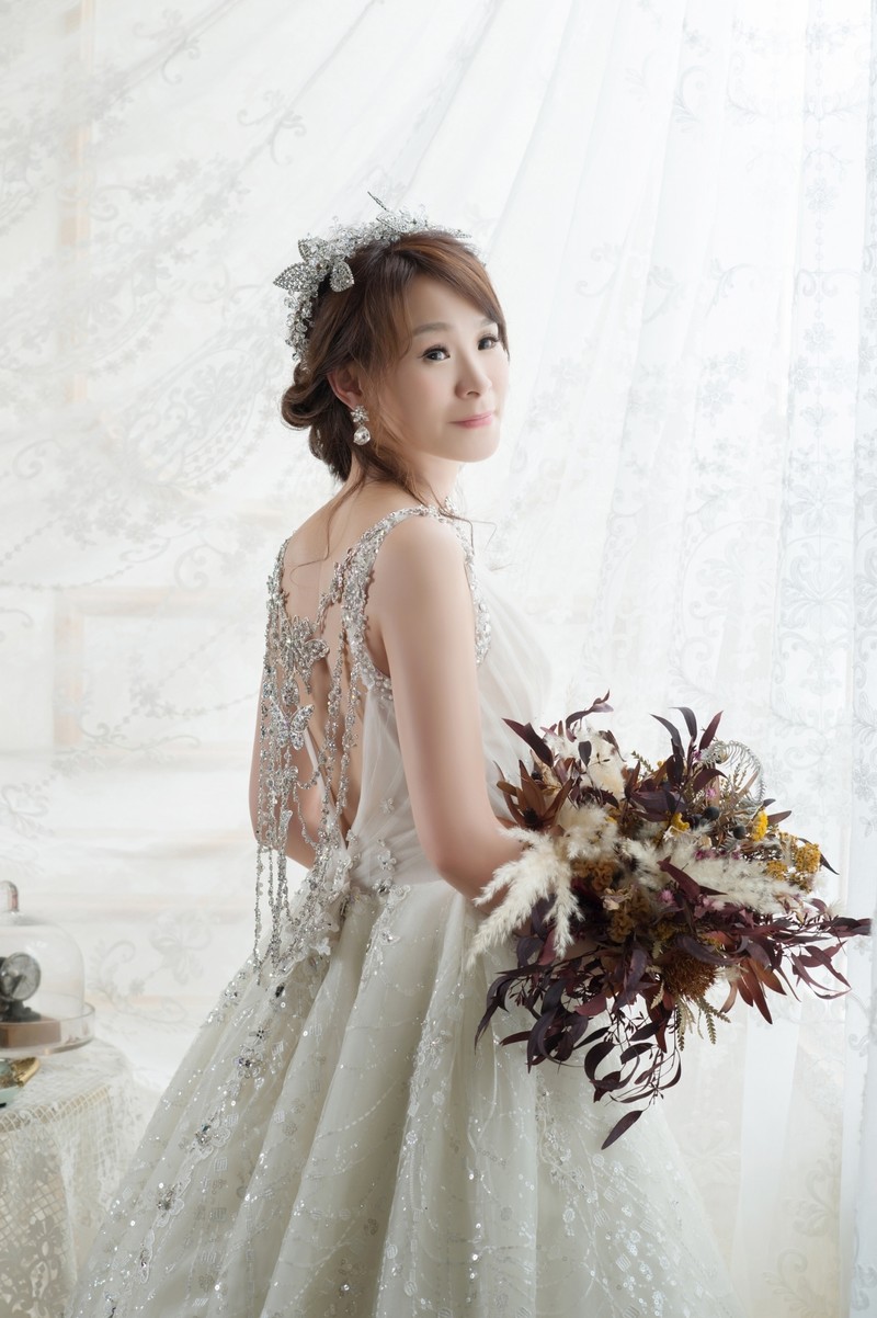 水晶婚紗我選了背後水晶是蝴蝶形狀的禮服,完全符合我的少女心(你是我的小蝴蝶??),水晶婚紗我掙扎了很久,因為別款也很漂亮,好想再拍一套XD。