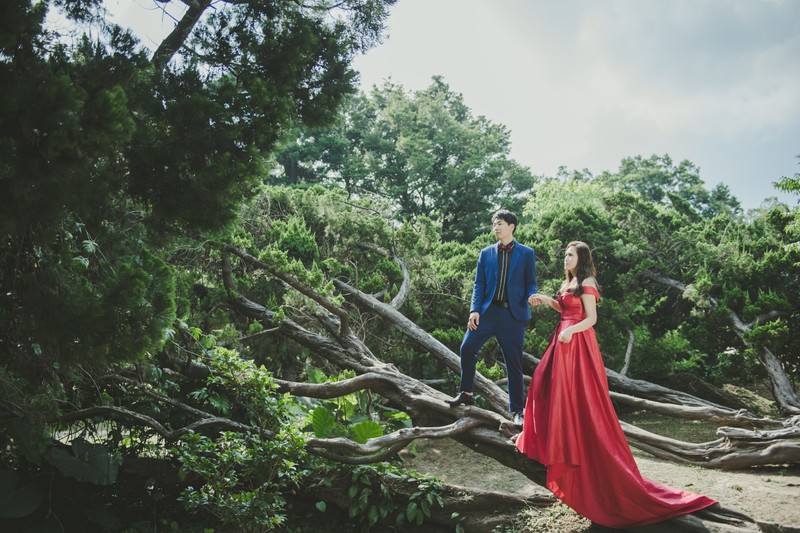 第二套是紅色那套,我們跑到陽明山去外拍,其實我最喜歡這套,但造型出來不是很滿意⋯後面還夾了髮夾,但被我要求拿下來了,只是我想要捲捲美美長髮⋯但可能我流汗的關係吧!覺得很毛⋯真心覺得造型師可以的話可以試妝會比較好😔😔