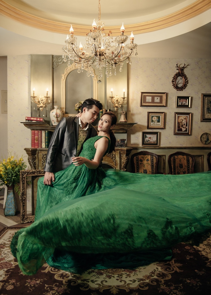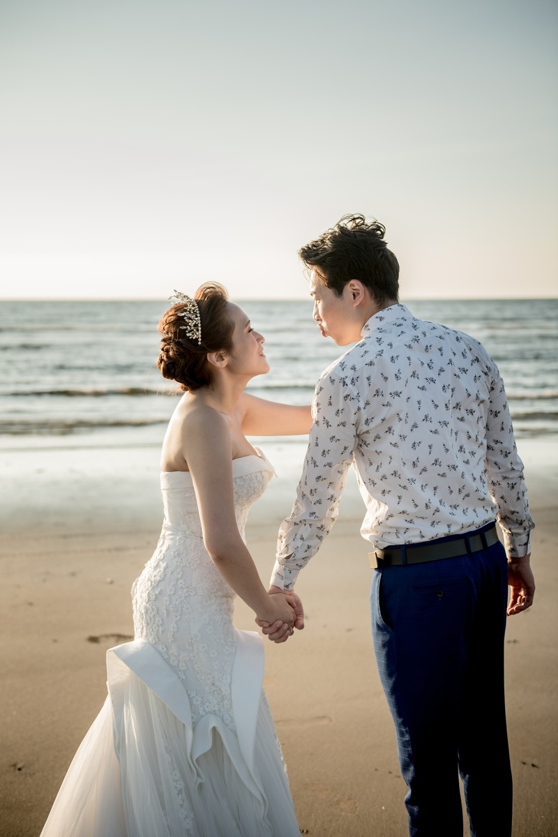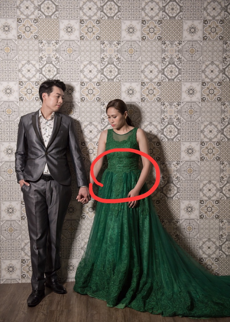 第四套是回到棚內拍的!覺得衣服改的很怪! 因為腰那變很短(牽手後面有磁磚的那張)試穿時有很美!改完後去試穿就覺得腰身怪怪的⋯但服務員說改完變合身會往上是正常的,我有點小失望⋯