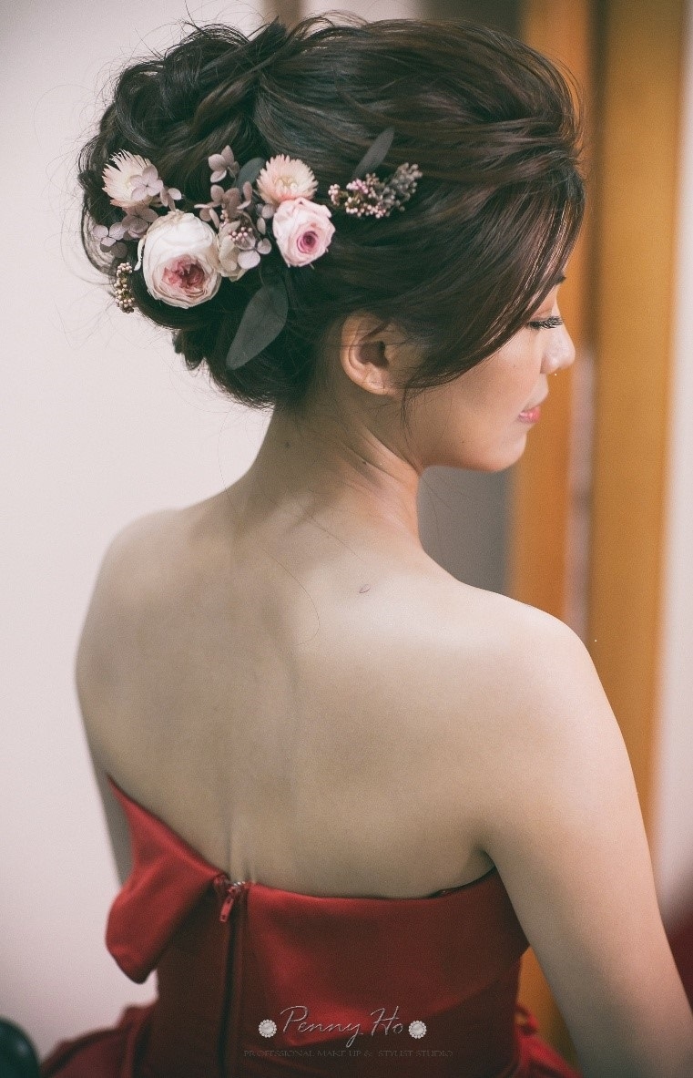 文定~採用粉色系列不凋花~中盤髮型~呈現端莊典雅風造型