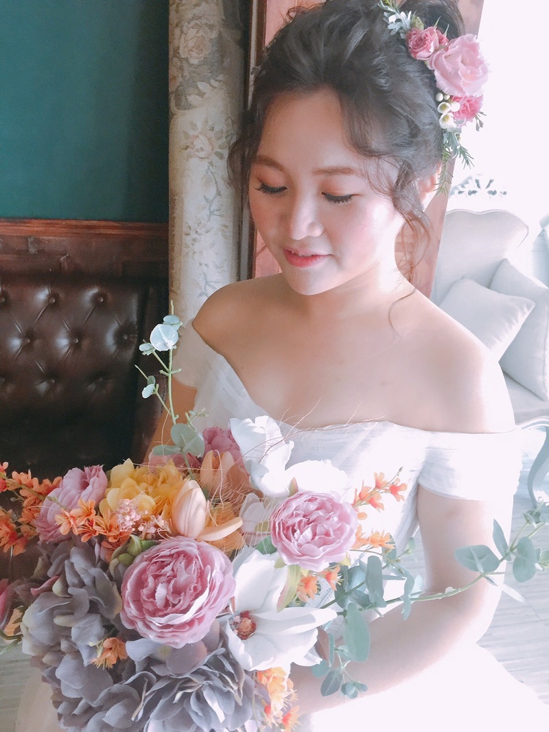 棋棋造型師很貼心也很溫柔,日式妝髮美美的,花朵都是隔天到花市採買的